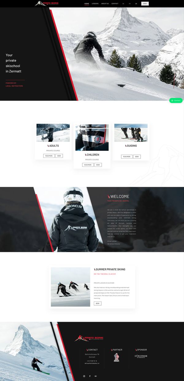 Le site de Prato Borni vous transporte dans cet univers alpin d’exception. L’interface est claire, séduisante, administrable en toute simplicité nous pouvons ajuster visuels ou textes à tout moment pour vous inspirer, vous informer, vous inviter à la neige.